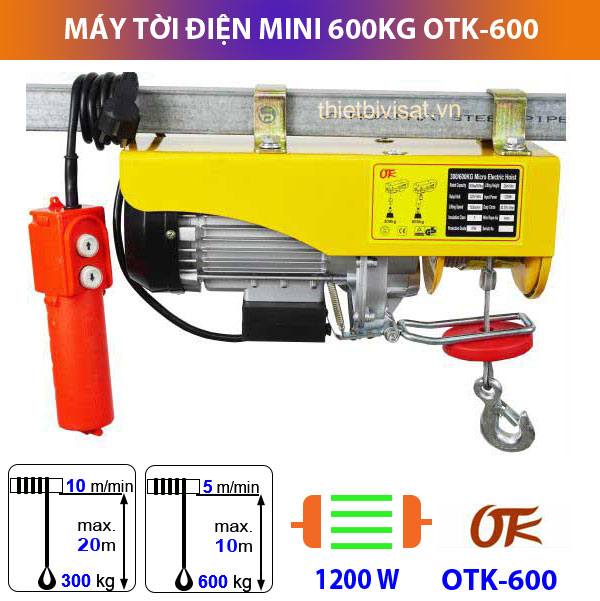 - Tên sản phẩm: Máy tời điện mini 600kg OTK