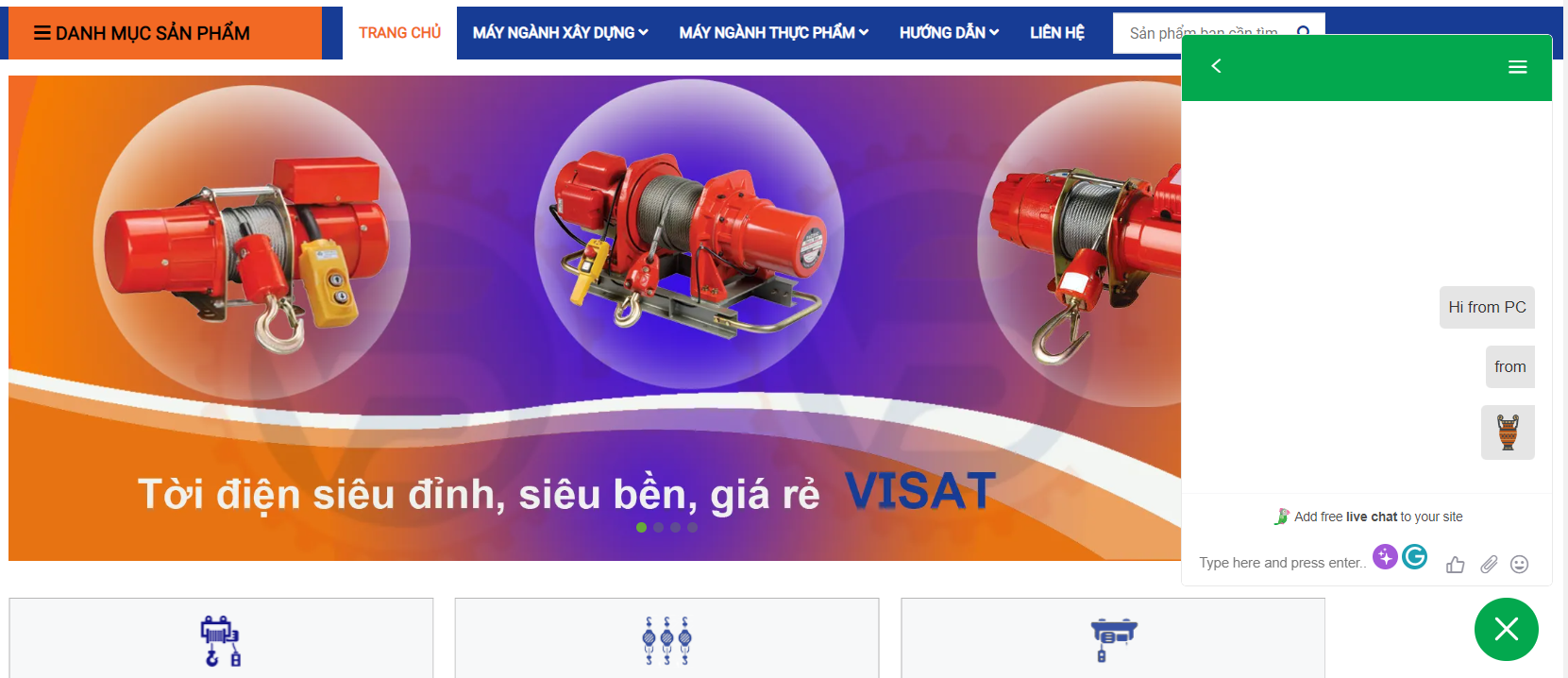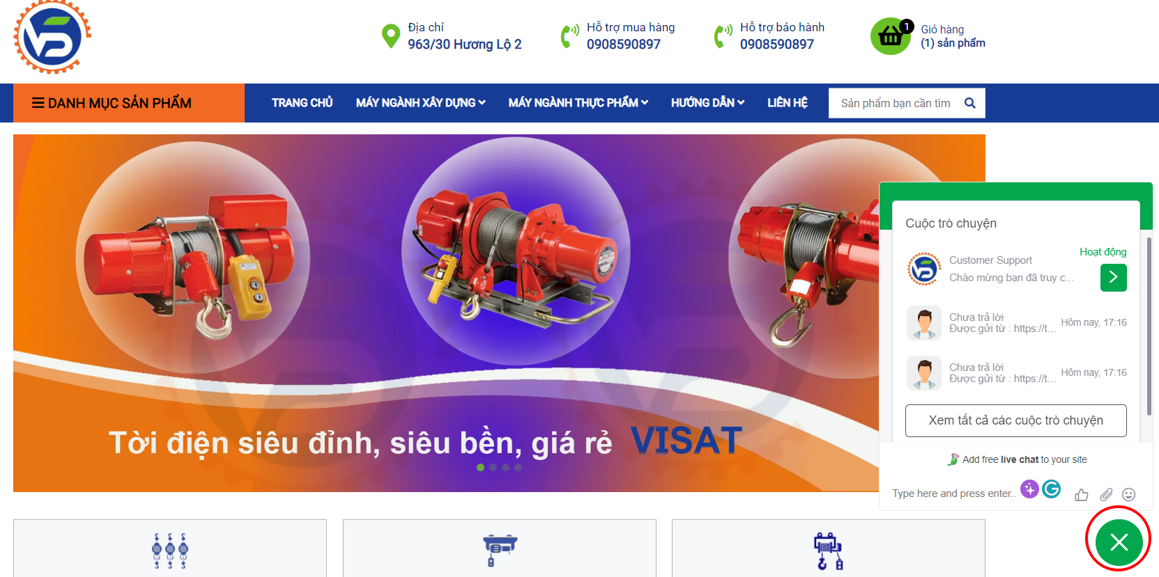 Khung chat hiện ra bạn nhập nội dung cần tư vấn. Công ty TNHH TM Thiết bị công nghiệp VISAT sẽ kiểm tra và phản hồi ngay cho bạn
