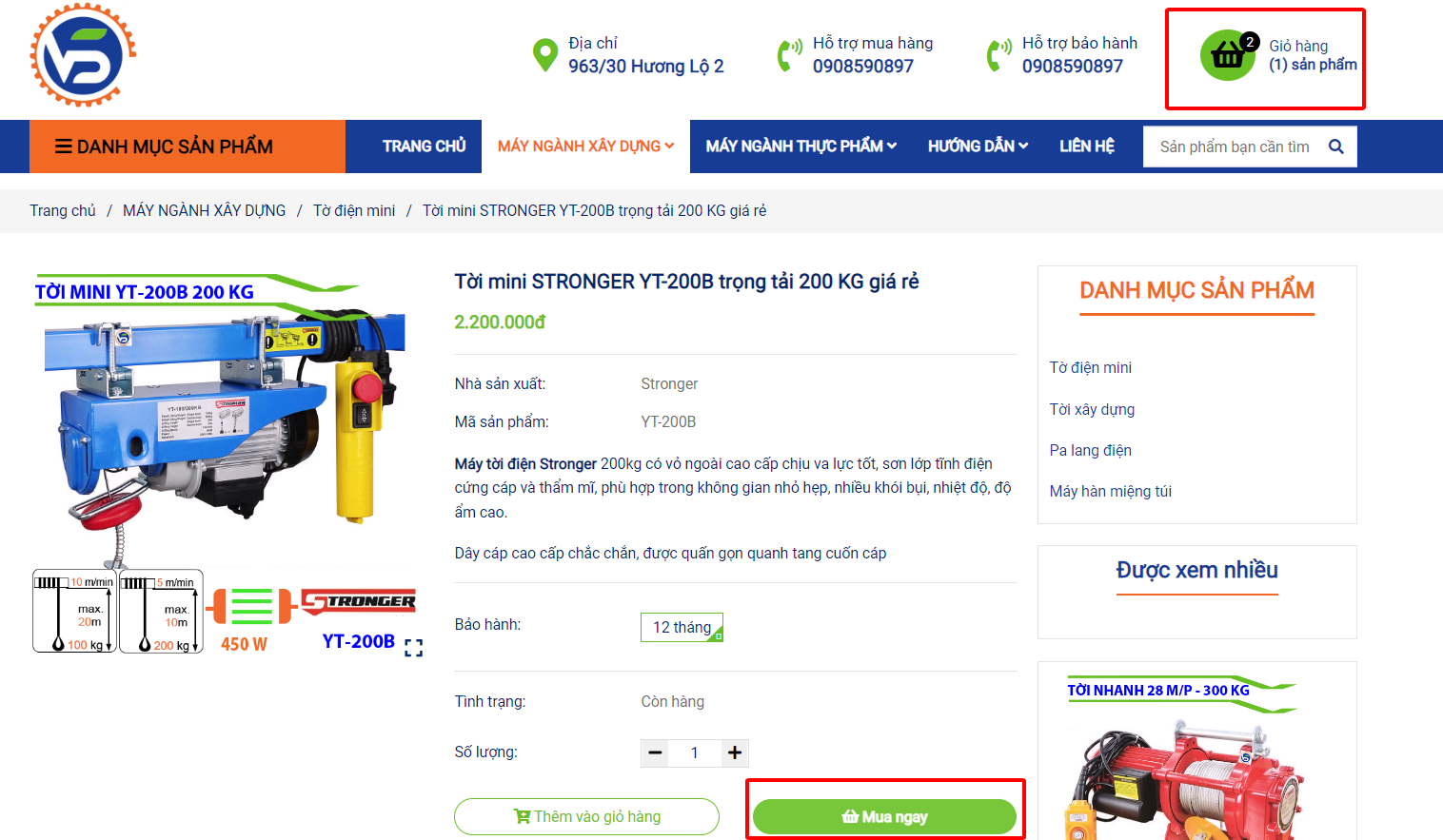 Hướng dẫn đưa sản phẩm vào giỏ hàng trên website thiêt bị VISAT
